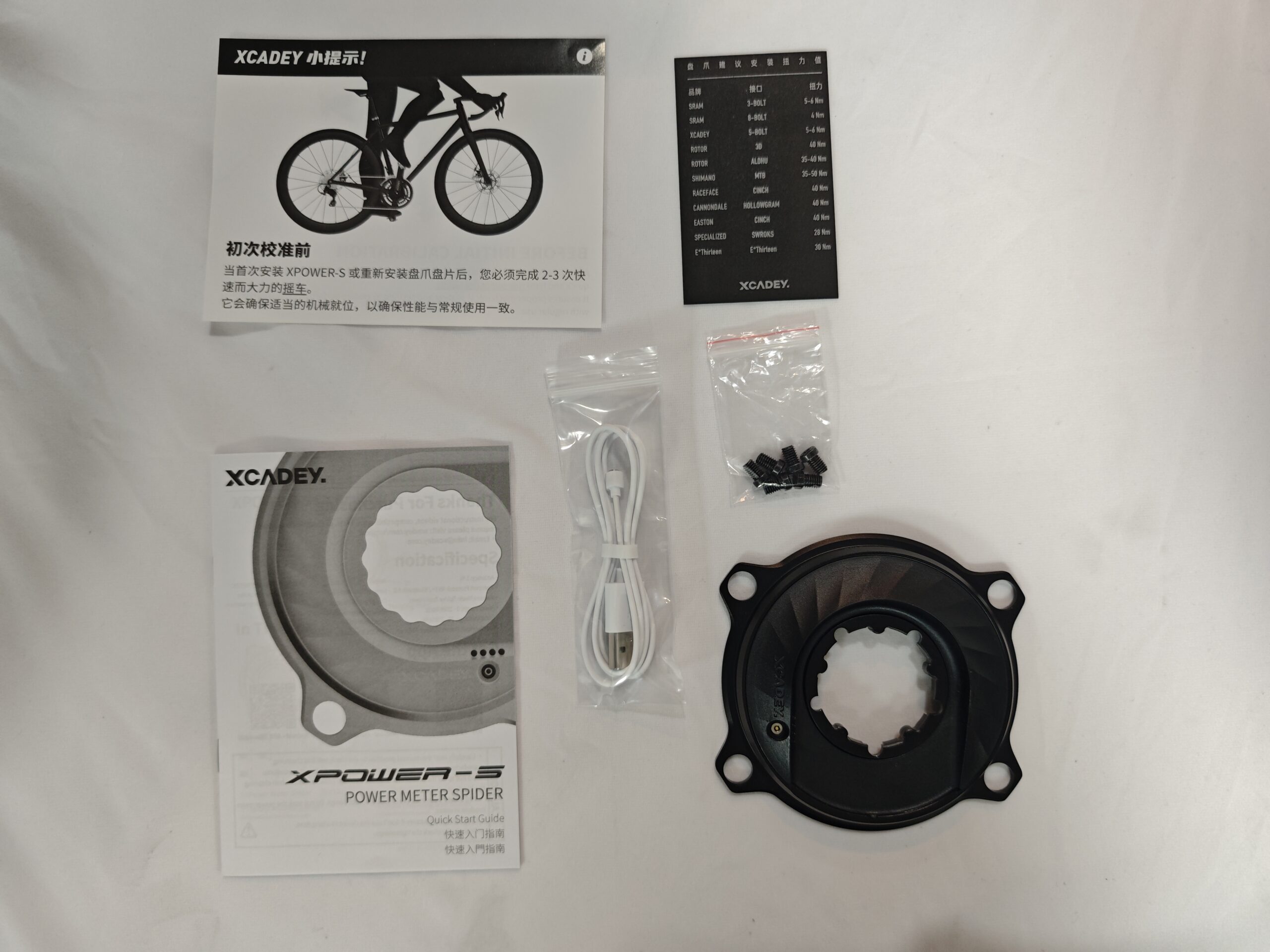 Items included with the power meter spider: