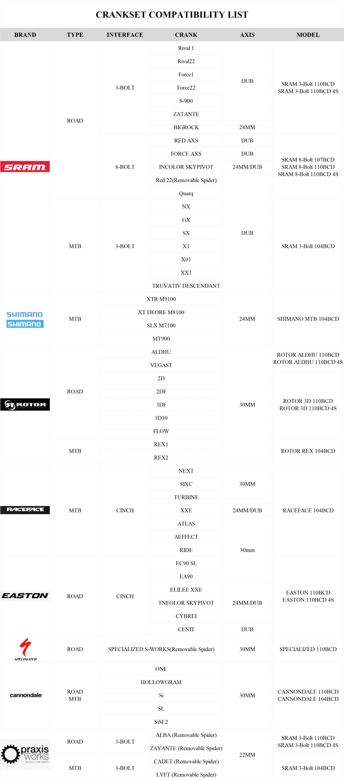 XCADEY power meter spiders are available in various models and are compatible with different crank brands.